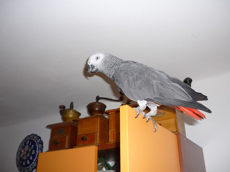 * Nesmím nikoho vidět něco jíst - nebo vůbec žvýkat. Chci ihned a neprodleně vzorek. Bohužel, někdy nedostanu nic - a někdy opravdu jen drobek (prý papoušci nesmí to co lidé).